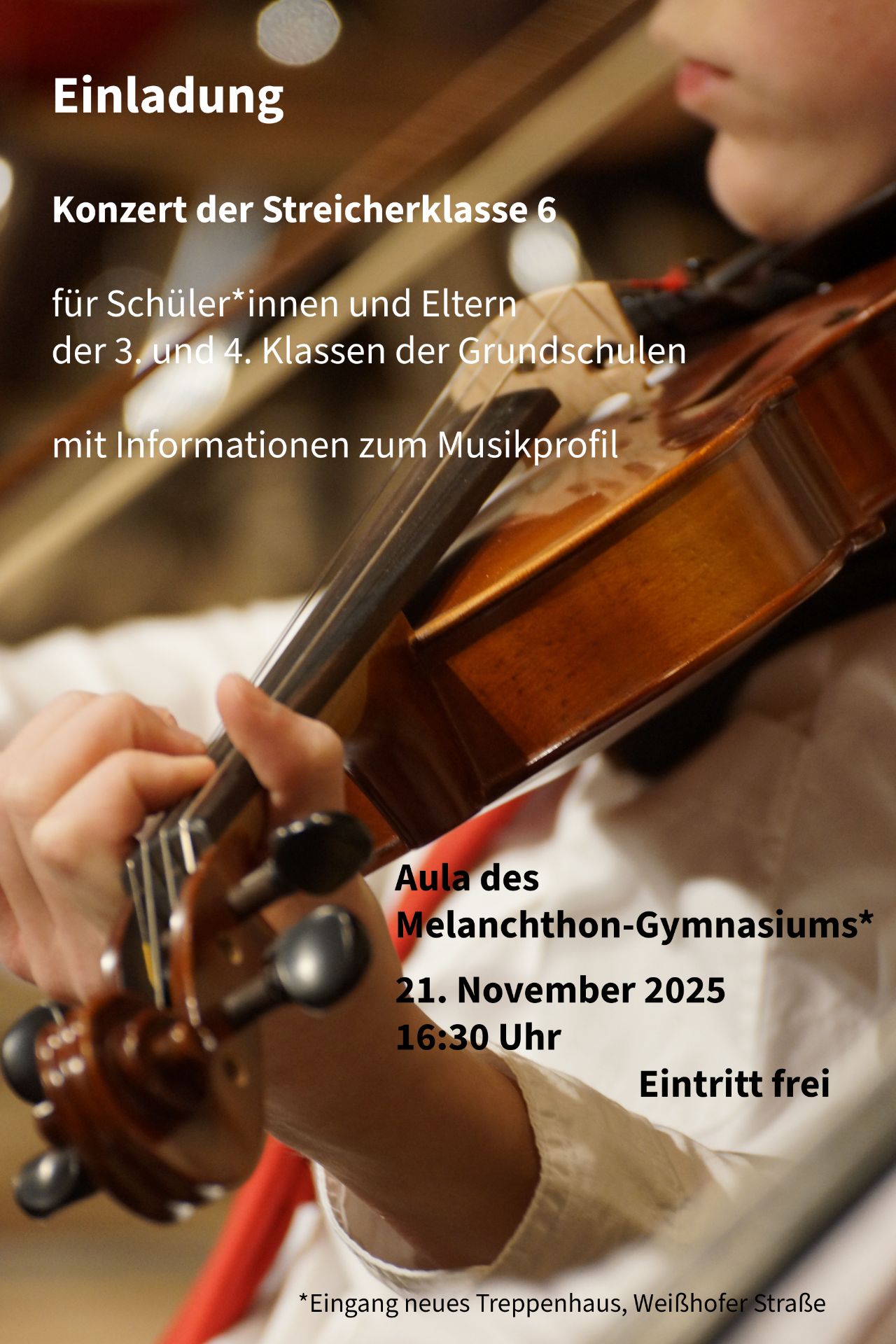 Grundschul-Streicherklassenkonzert mit Informationen zum MusikprofilAula MGB, Eingang neues Treppenhaus Bronnerbau